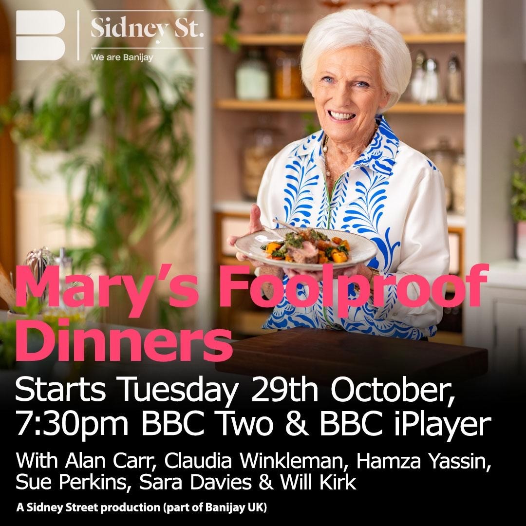 Mary's Foolproof Dinners (Sidney Street) BBC2, 7.30pm @SarahMyland @JamesHaastrup @GeorgiaLong @ClareBunting @RoseWilkinson @AdrianJohnson @PaulClifton